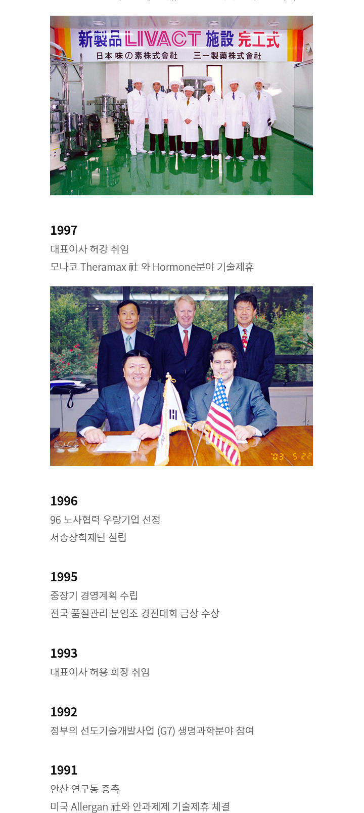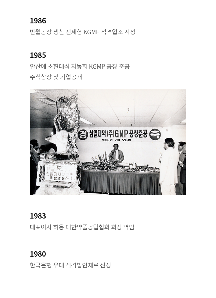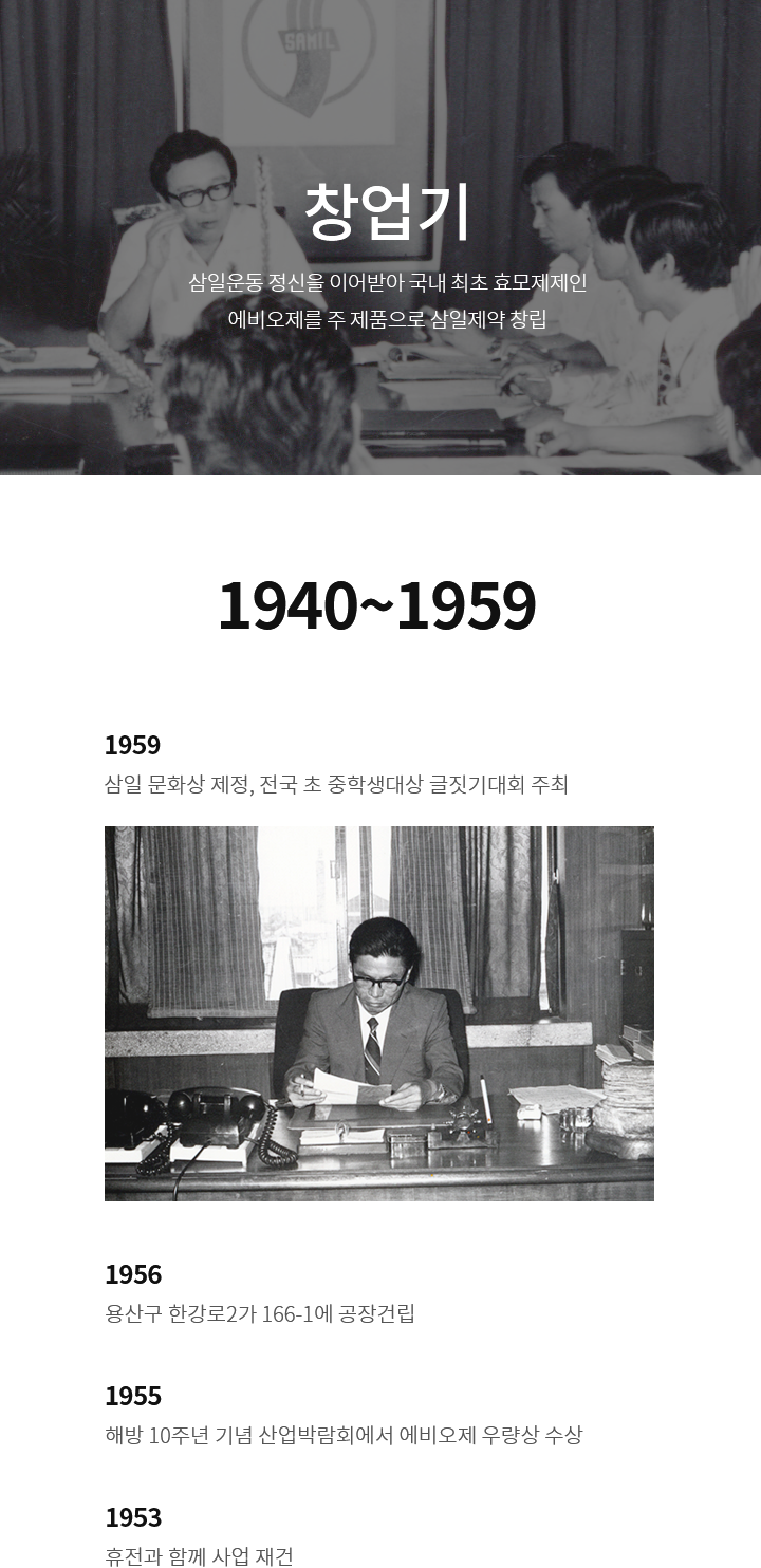 • 국내 최초 효모제제인 에비오제 300정을 주 제품으로 삼일제약 주식회사 창업