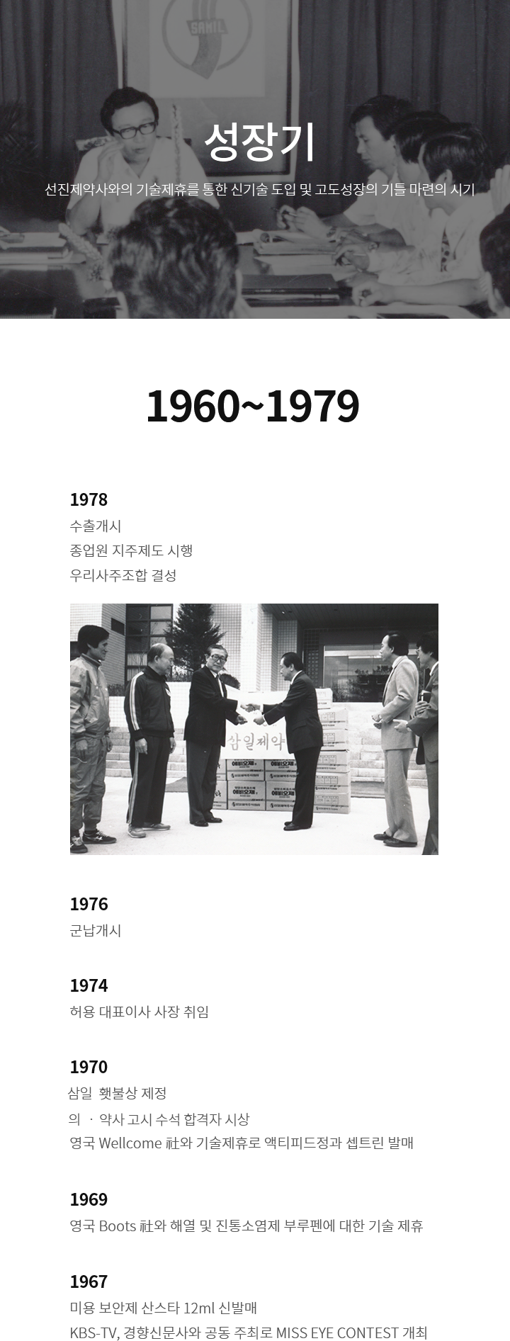 선진제약사와의 기술제휴를 통한 신기술 도입 및 고도성장의 기틀 마련의 시기