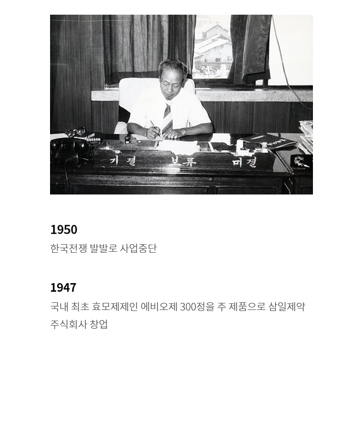 삼일운동 정신을 이어받아 국내 최초 효모제제인 에비오제를 주 제품으로 삼일제약 창립
